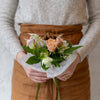 The photos represent the spirit of the bouquet. Flowers, foliage and color palette will change weekly. The size of the bouquet will remain the same.