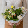 The photos represent the spirit of the bouquet. Flowers, foliage and color palette will change weekly. The size of the bouquet will remain the same.